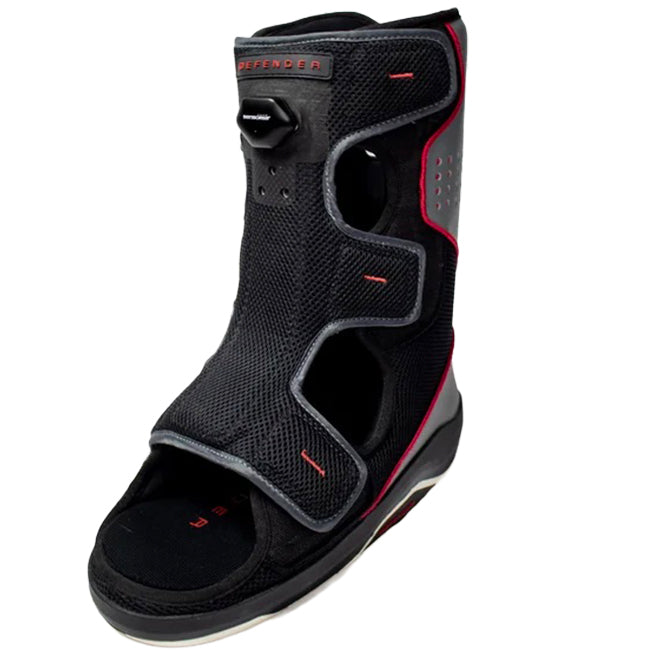 Foot Defender is a protective boot designed to decrease the forces applied to the foot and ankle when walking or standing. It provides a superior offloading of the foot to assist in wound healing.